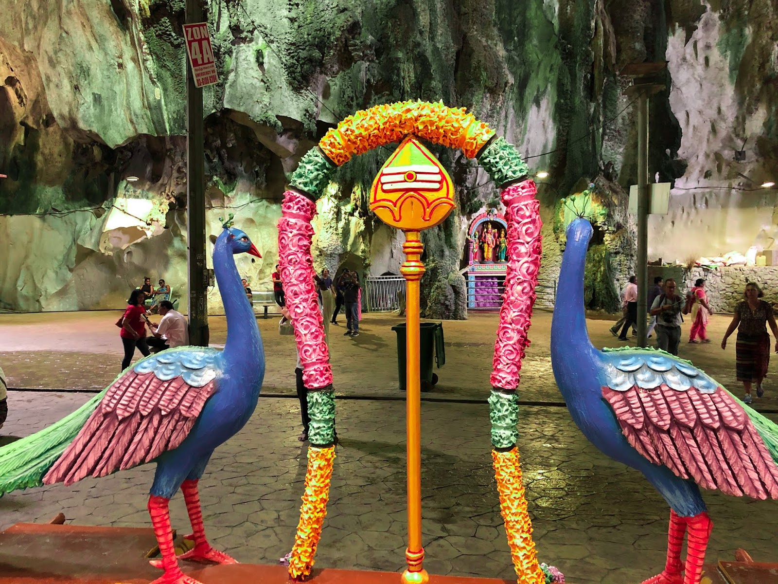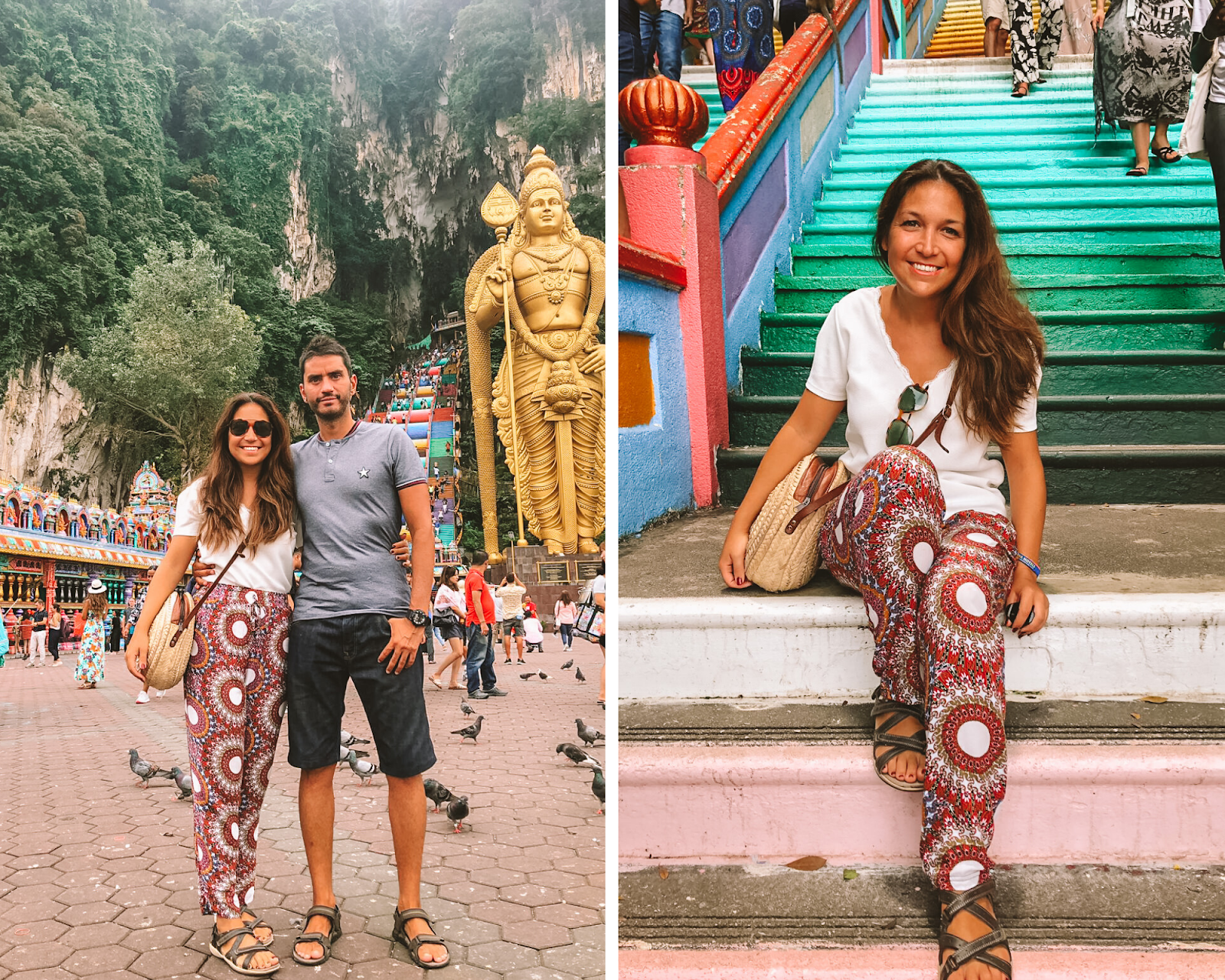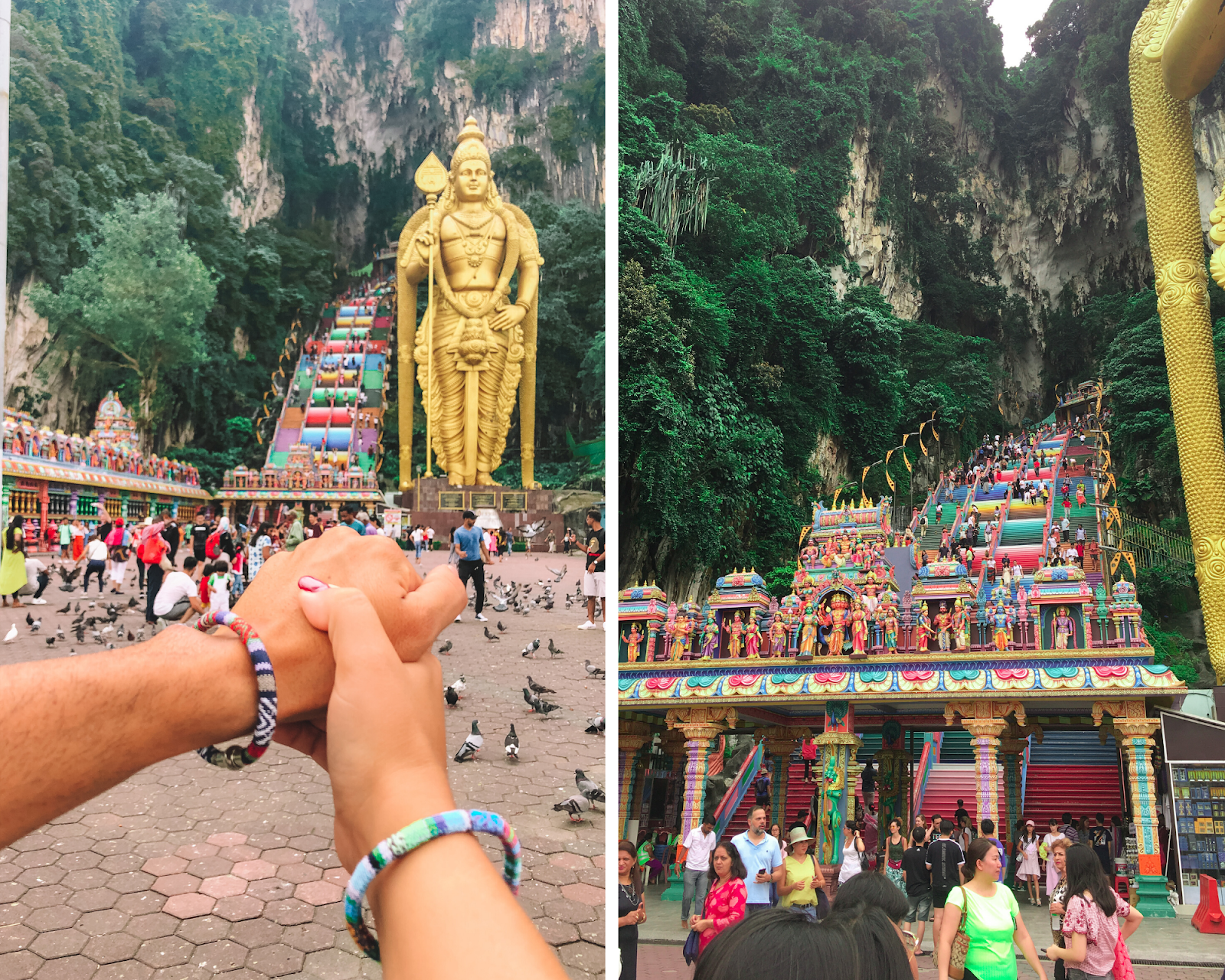 Recogimos nuestro equipaje, lo dejamos en cosigna y llamamos un grab para que nos llevara a las Batu Caves. En unos 20 minutos ya estábamos en la puerta. La entrada es gratuita