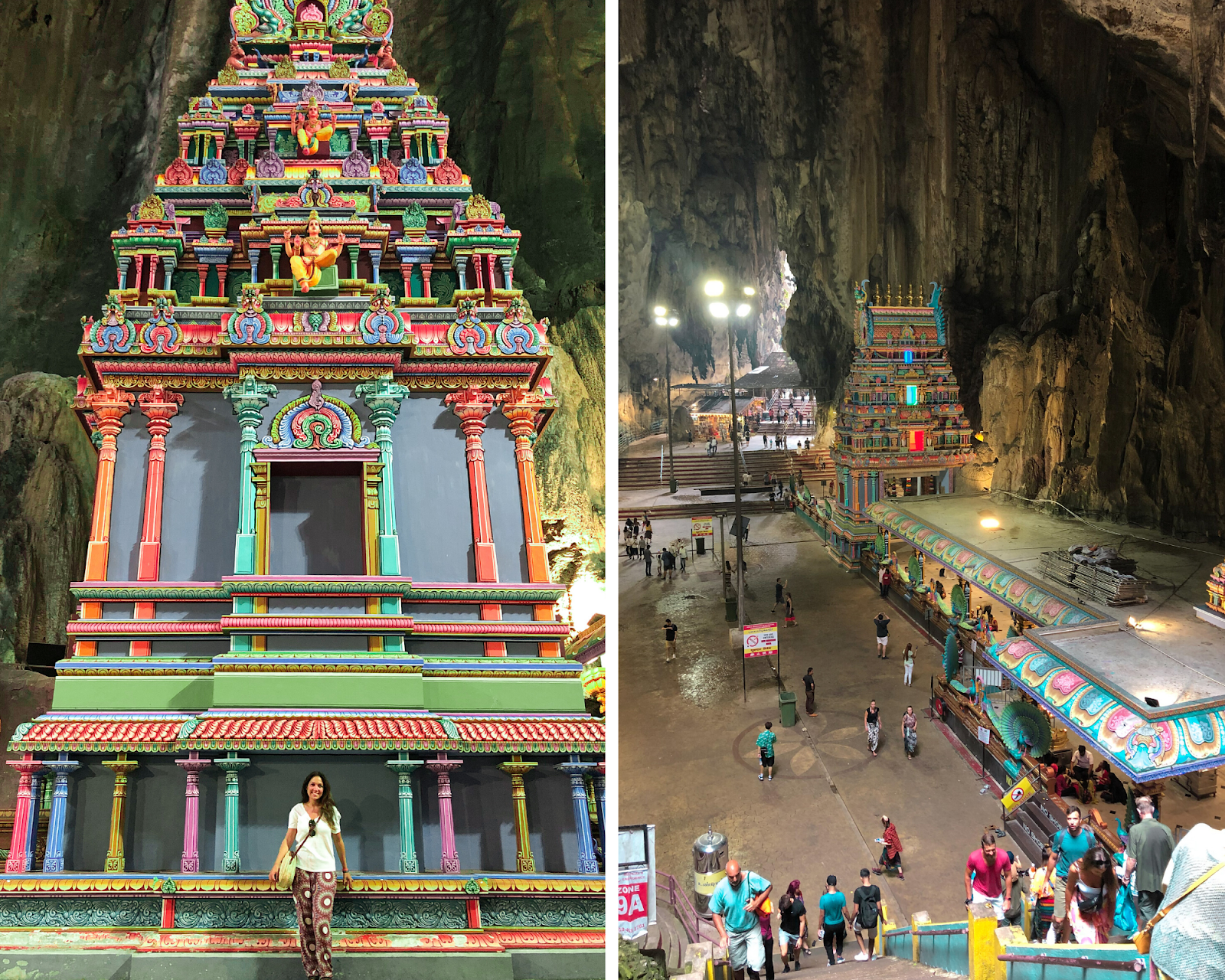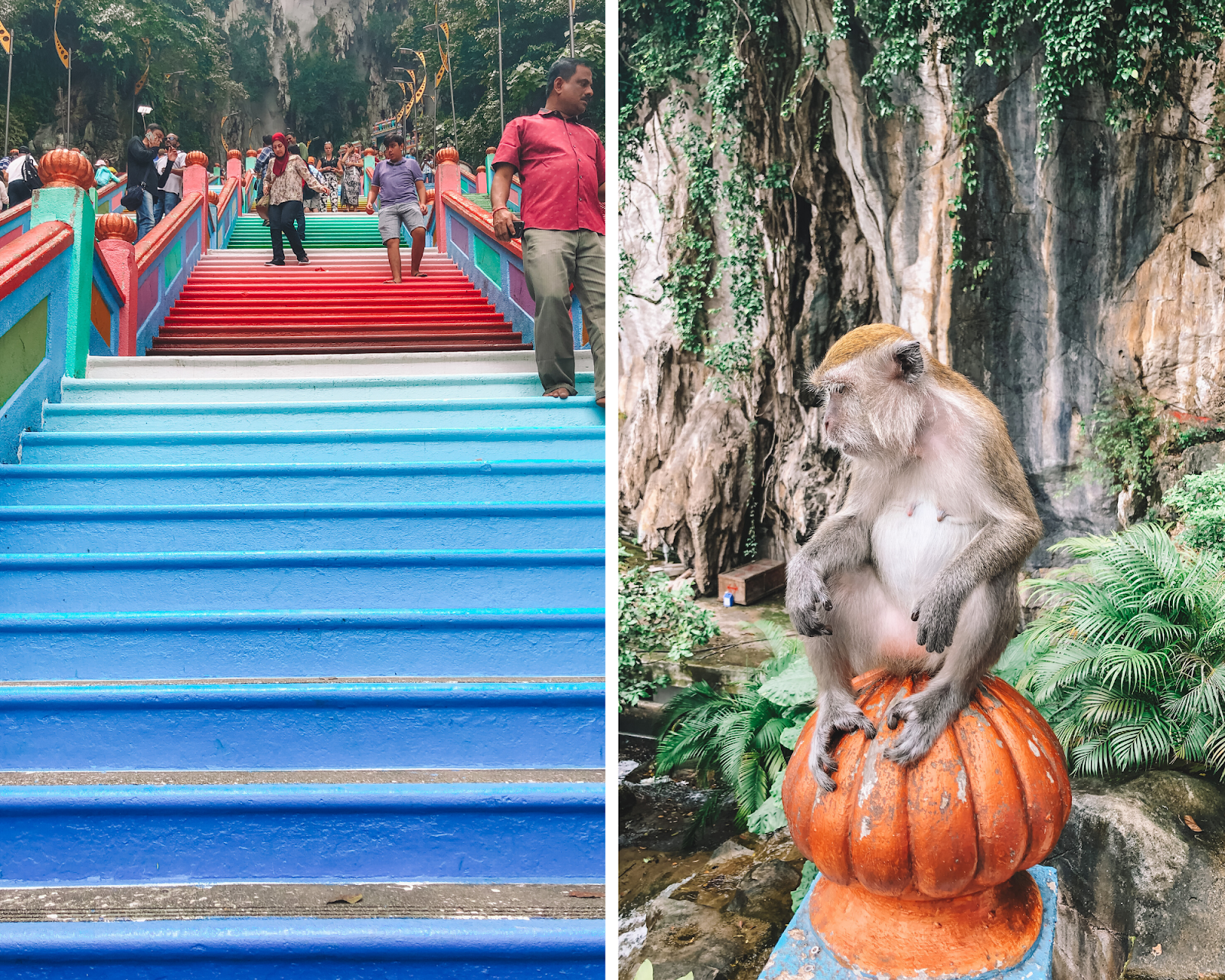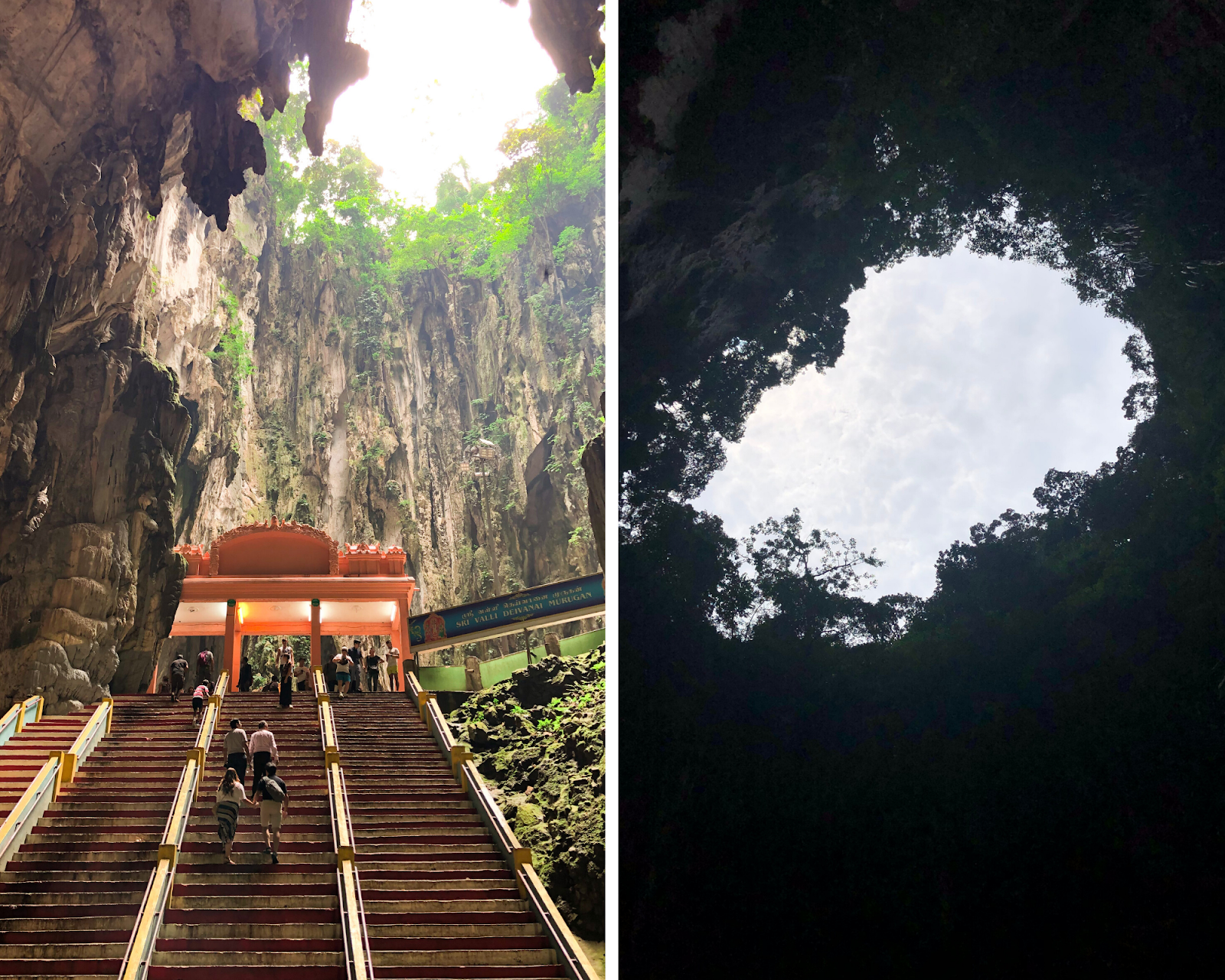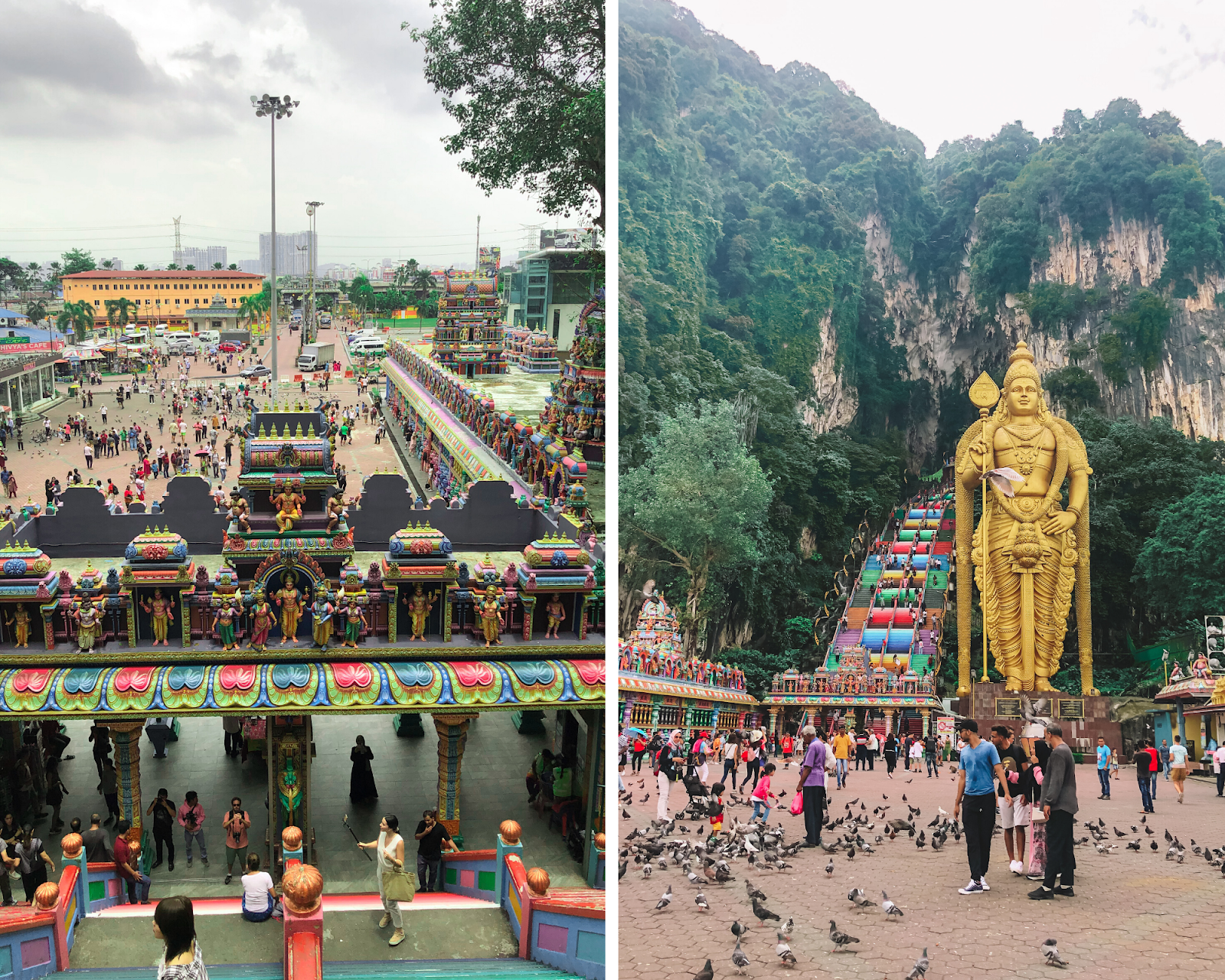 Recogimos nuestro equipaje, lo dejamos en cosigna y llamamos un grab para que nos llevara a las Batu Caves. En unos 20 minutos ya estábamos en la puerta. La entrada es gratuita