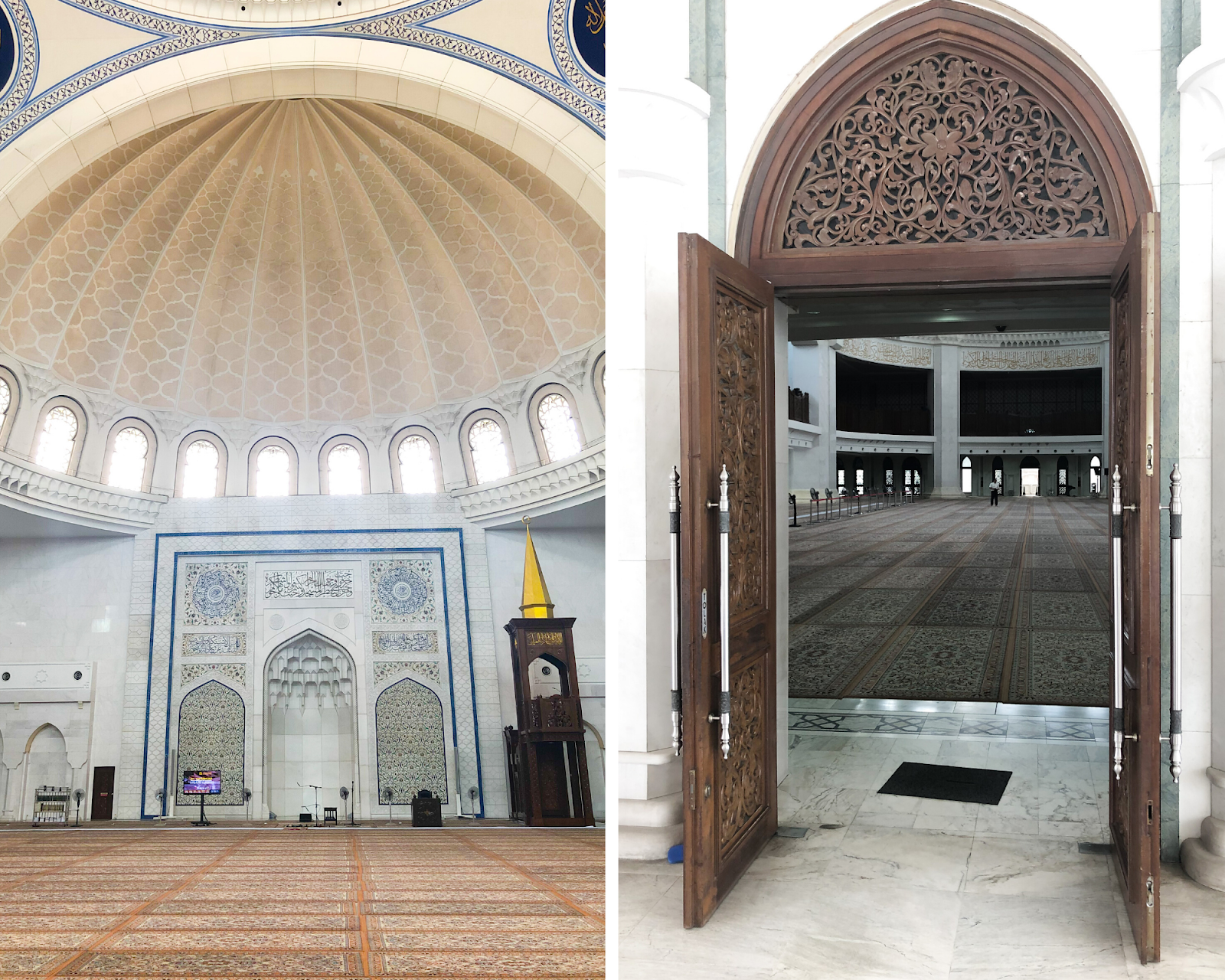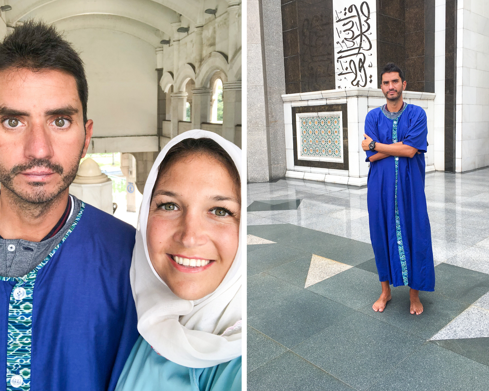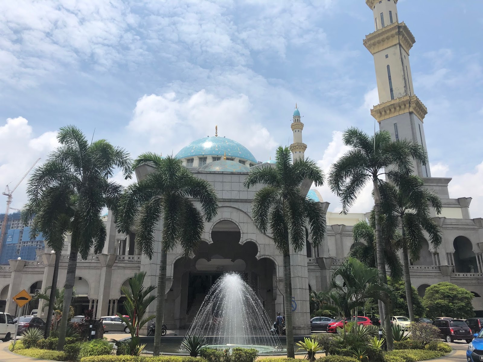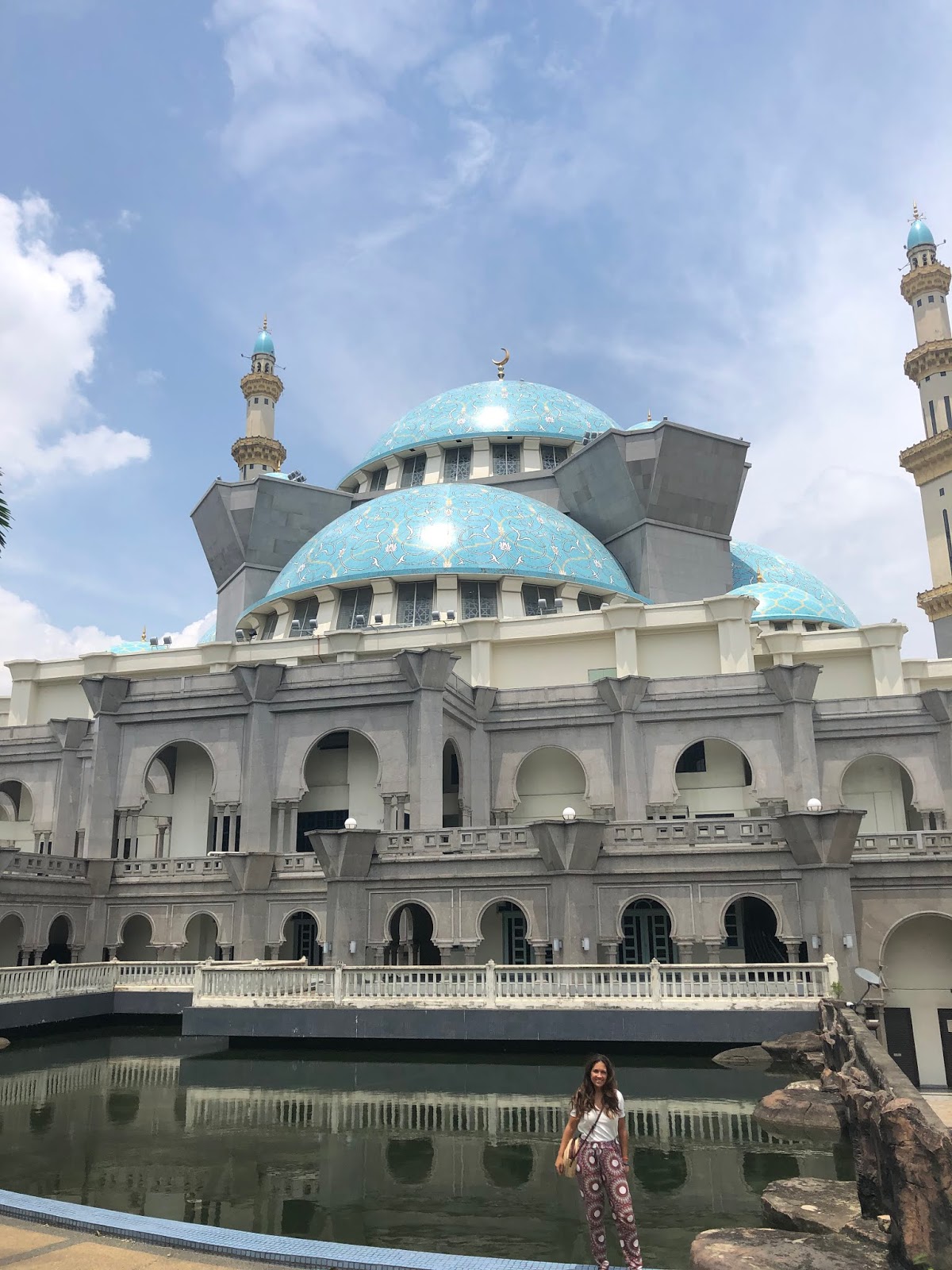 Después de una hora de visita a las Batu Caves fuimos a la Mezquita Wilayah. Sabiamos de su existencia gracias al blog Wanders On World y no queriamos perdernos la visita. Empezamos a dar vueltas al rededor de la misma hasta que encontramos la entrada para visitantes.